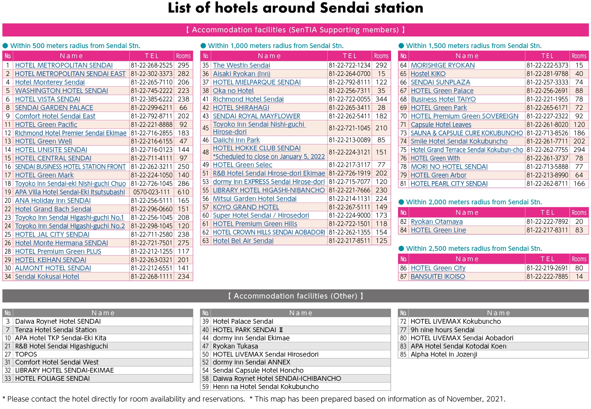 *Please note the above map and list of hotels are based on information as of Nov.2021.